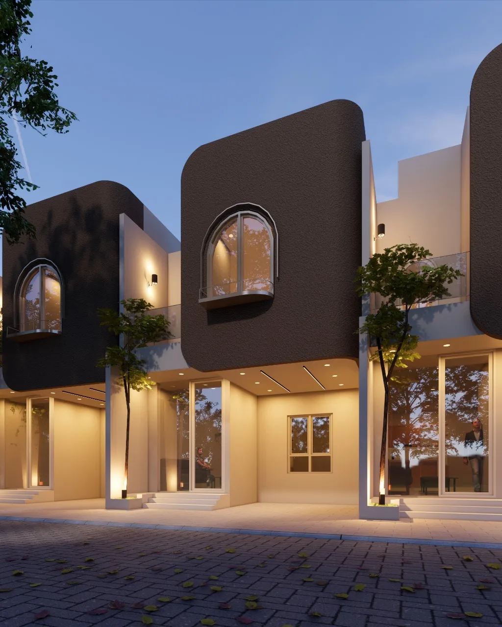 Pemakaian material seperti kaca, baja, beton, dan bahan komposit untuk tampilan yang sleek dan kontemporer.